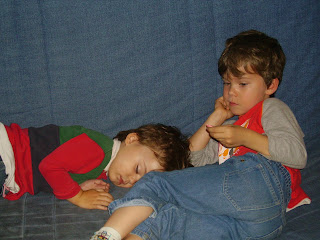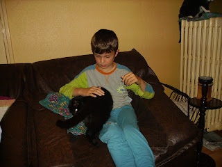 Le pauvre, il est complètement flagada. Il a une grosse angine virale qu'il partage avec son frère Benjamin, reste plus que Florian qui y a échappé.