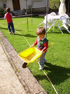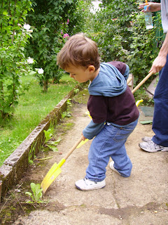 Lors de notre séjour dans les Ardennes, alexis c'est trouvé une nouvelles activité désherbé les allées chez papy il y a passé un temps fou et ne voulais plus lâcher sa pelle et brouette.