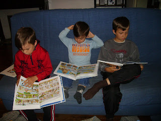 l'heure de l'école , un peu de lecture , ils ont l'aire très studieux.