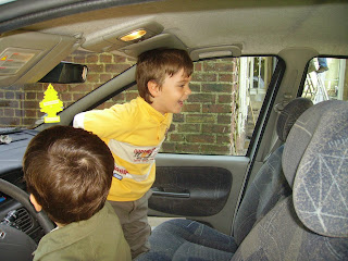 Les enfants ont profité que j'avais fini de passer l'aspirateur dans la voiture pour bondir dedans et se prendre pour des grands.