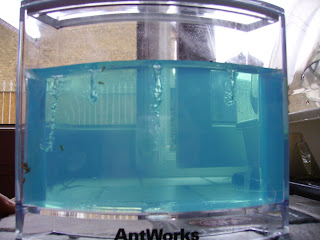 Nous testons une nouveauté chez nous, observé et essayé de comprendre les fournis dans une fourmilière moderne, ce gel bleu sert de nourriture et remplace la terre. Reste plus qu'a attendre qu'elles creusent leurs galeries.
