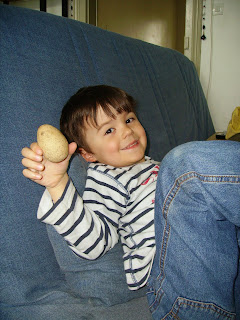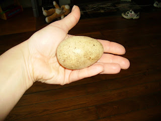 Et oui en allant travailler dans le potager alexis a fait une trouvaille un oeuf fossilisé.
