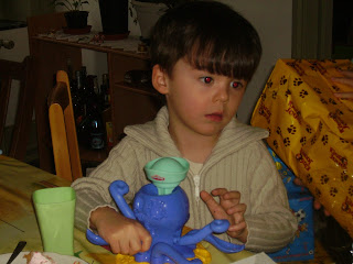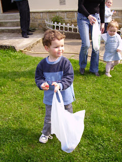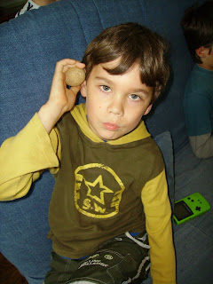 Il en est pas peu fier de son oeuf, par contre les enfants se sont lancés dans l'imaginaire et attende l'éclosion de l'oeuf de dinosaure.